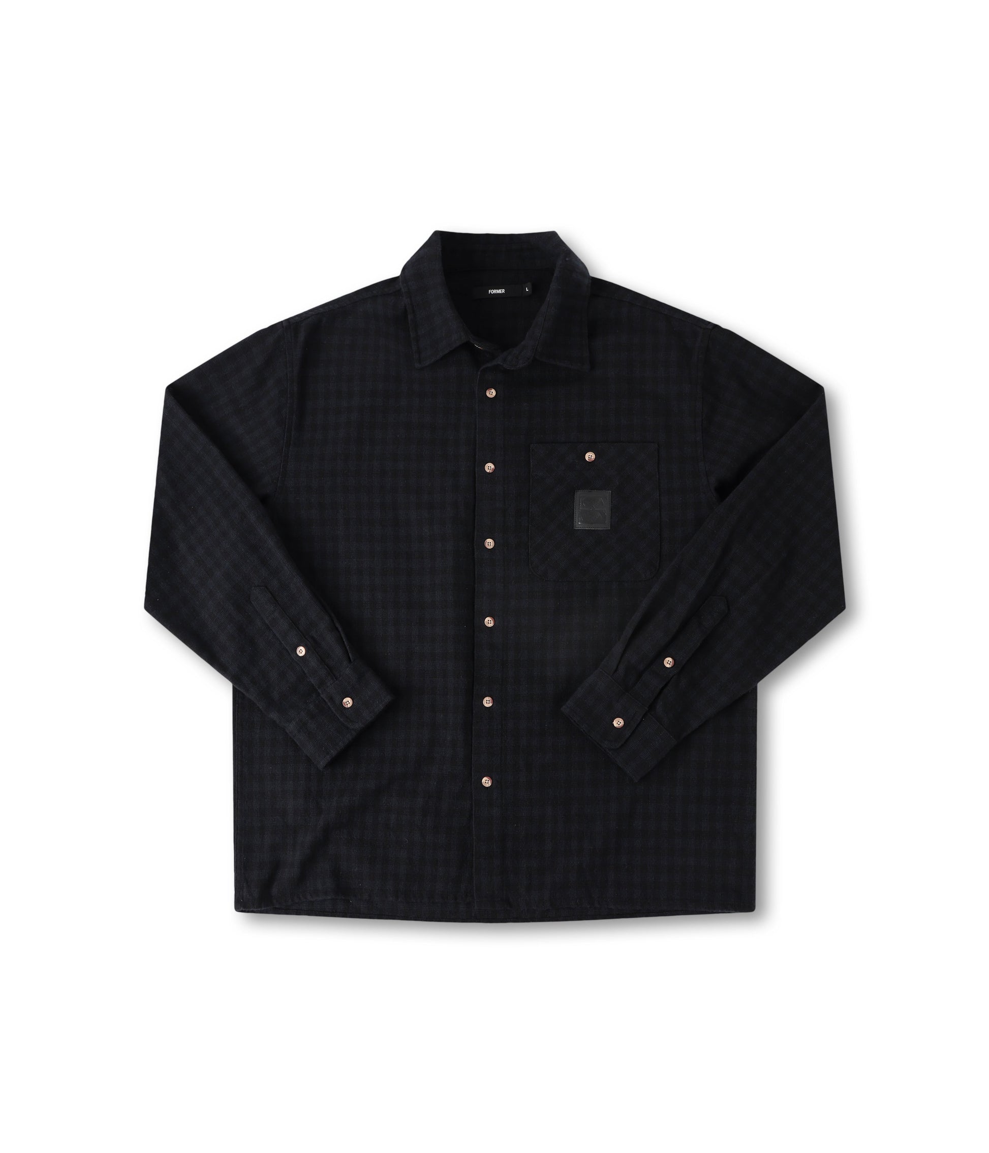 Crafted in 100% cotton brushed flannel and delivered in our standard FORMER Vivian shirt fit. Featuring Crux PU leather patch, chest pocket, and tortoise button closure.