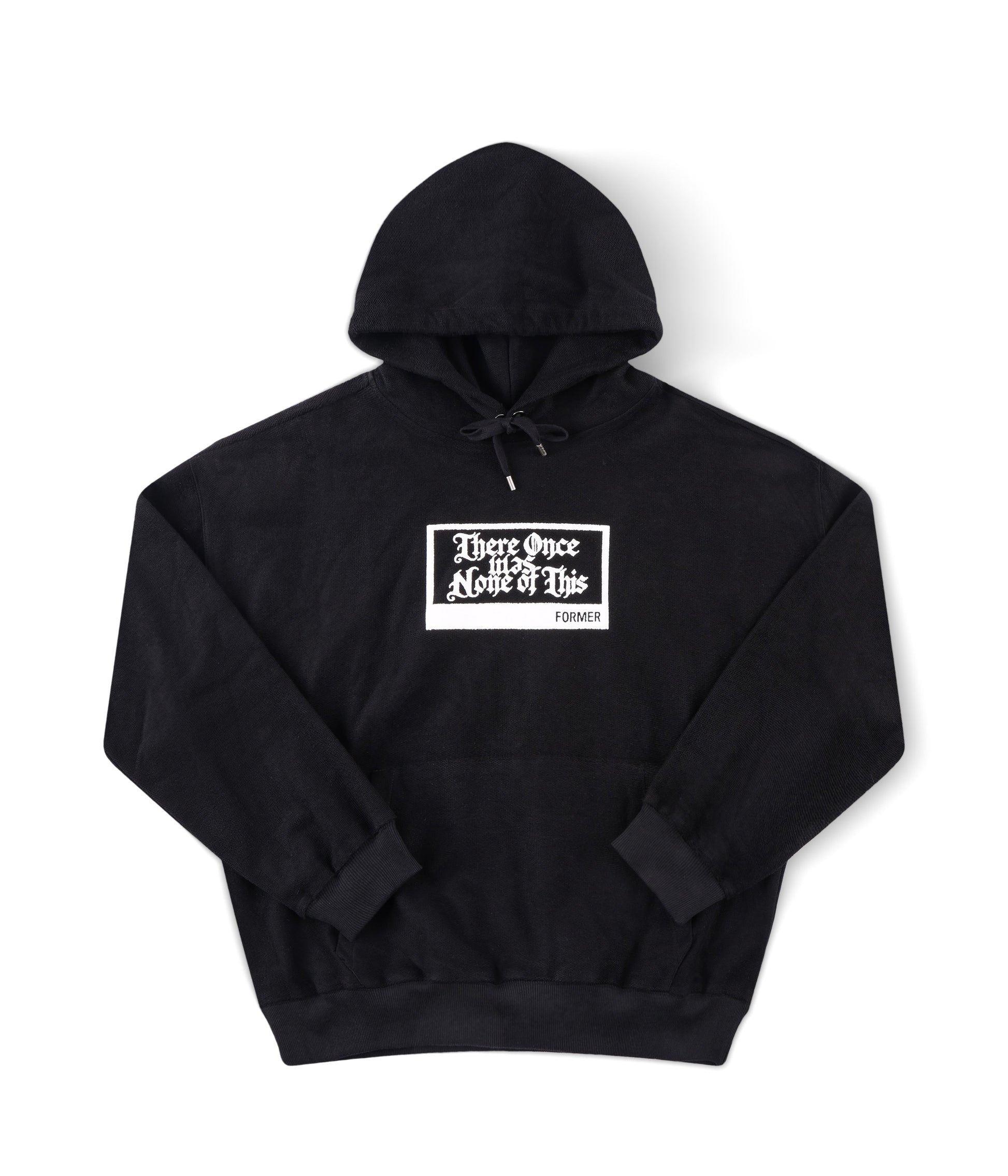 Designed in a premium 380GSM French terry loop (80% cotton 20% polyester) for warmth and comfort, and delivered in our boxy FORMER hood fit. Featuring drawcord closure with FORMER branded metal aglets, front graphic in a soft hand plastisol screen print, kanga pocket, and double hood lining.
