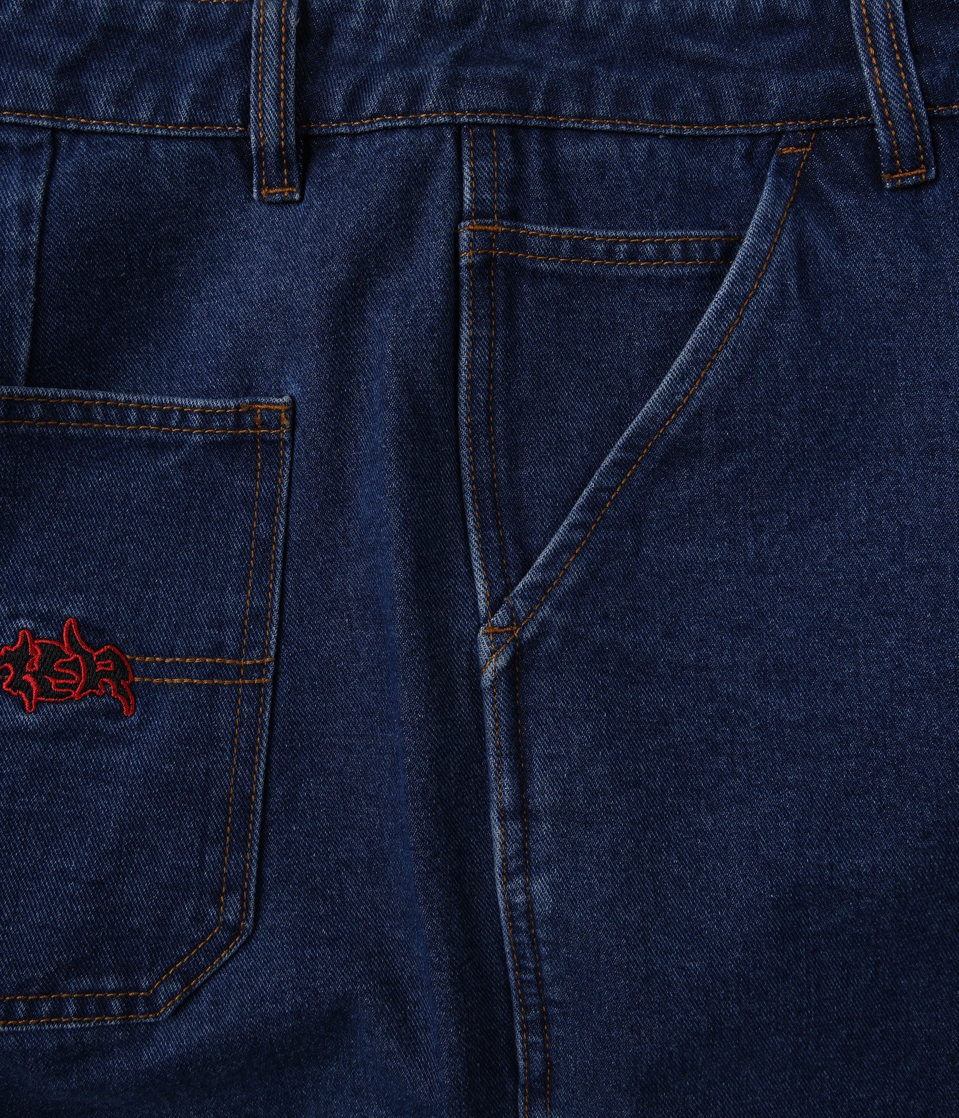 Designed by FORMER founder Dane Reynolds, this seasonal execution of the Reynolds Pant is constructed from durable 100% denim and delivered in our signature Reynolds Baggy fit with a wide 19" leg opening. Featuring workwear back pockets, vintage wash, back pocket embroidery, and slant front pockets.