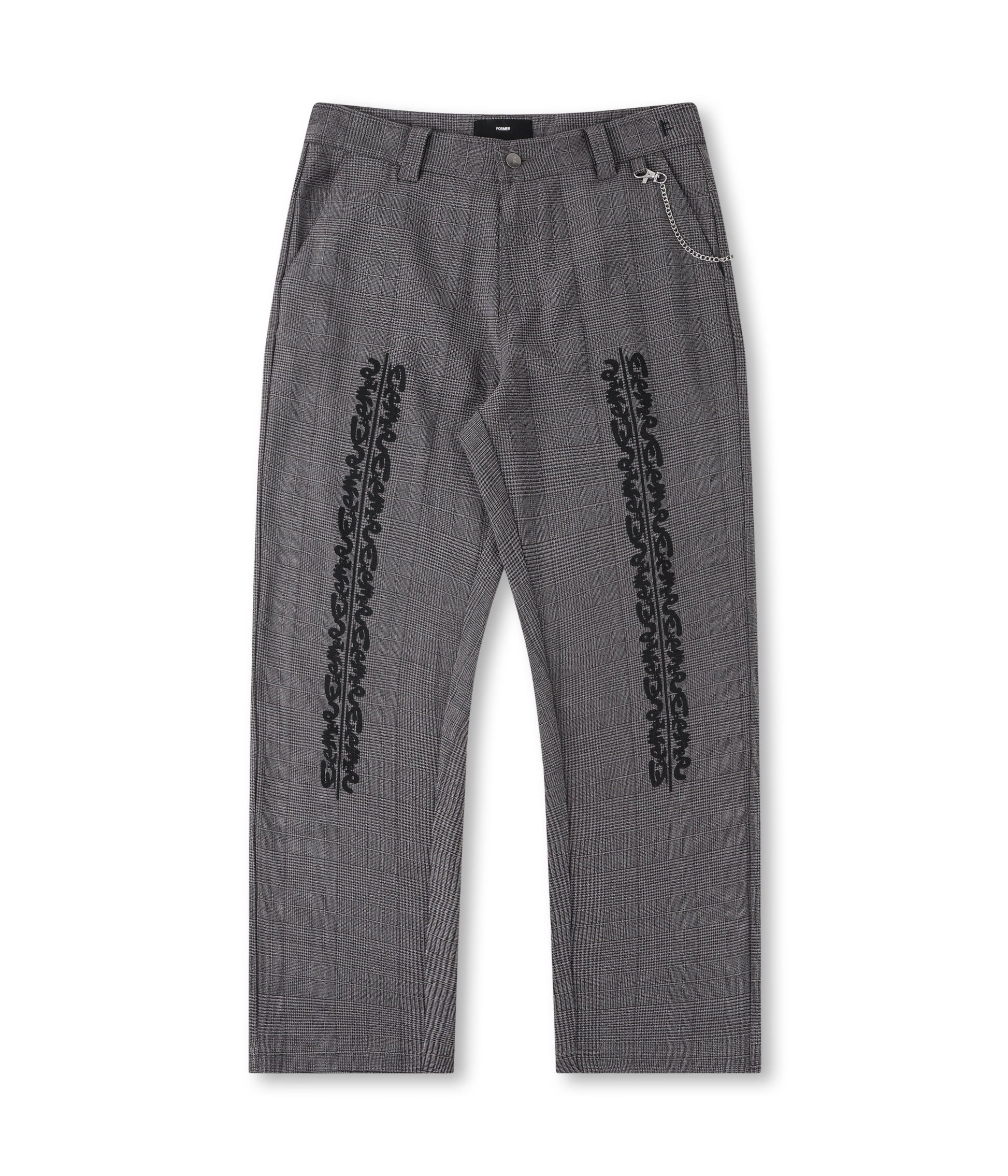 Constructed from a premium rayon blend (65% polyester 30% rayon 5% elastane) and delivered in our Harmony fit with a 17.5" leg opening. Featuring a fixed waist, front graphic screenprint, signature Crux logo PU patch on back waistband, FORMER ring zip on pocket with chain, and FORMER branded metal shank button.