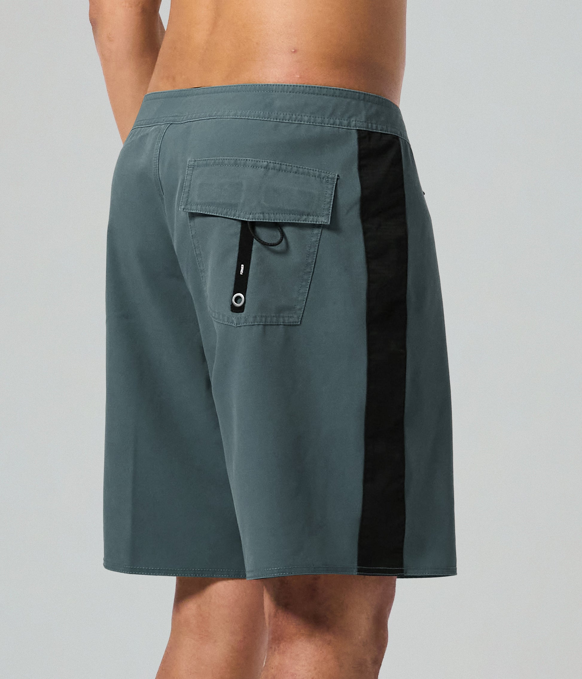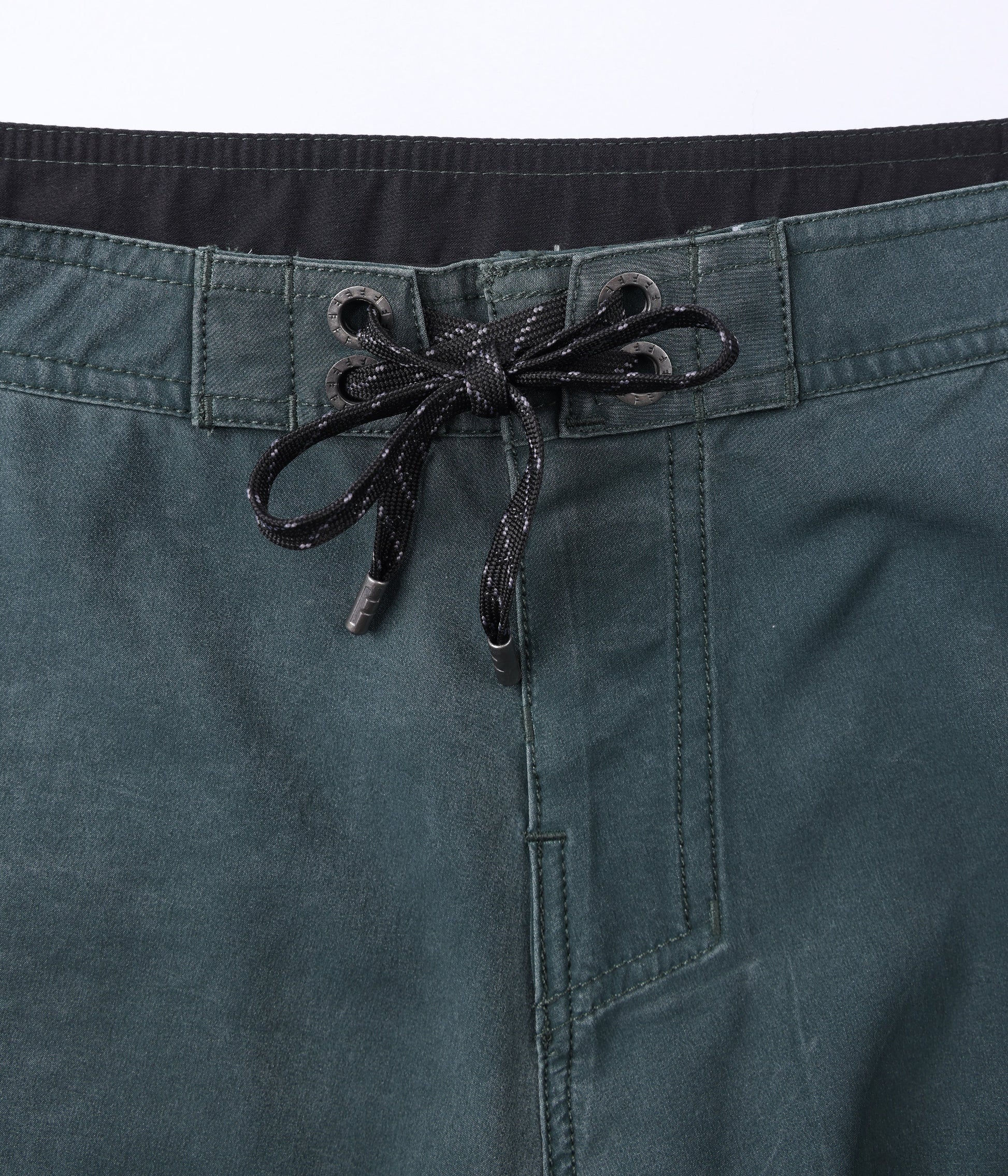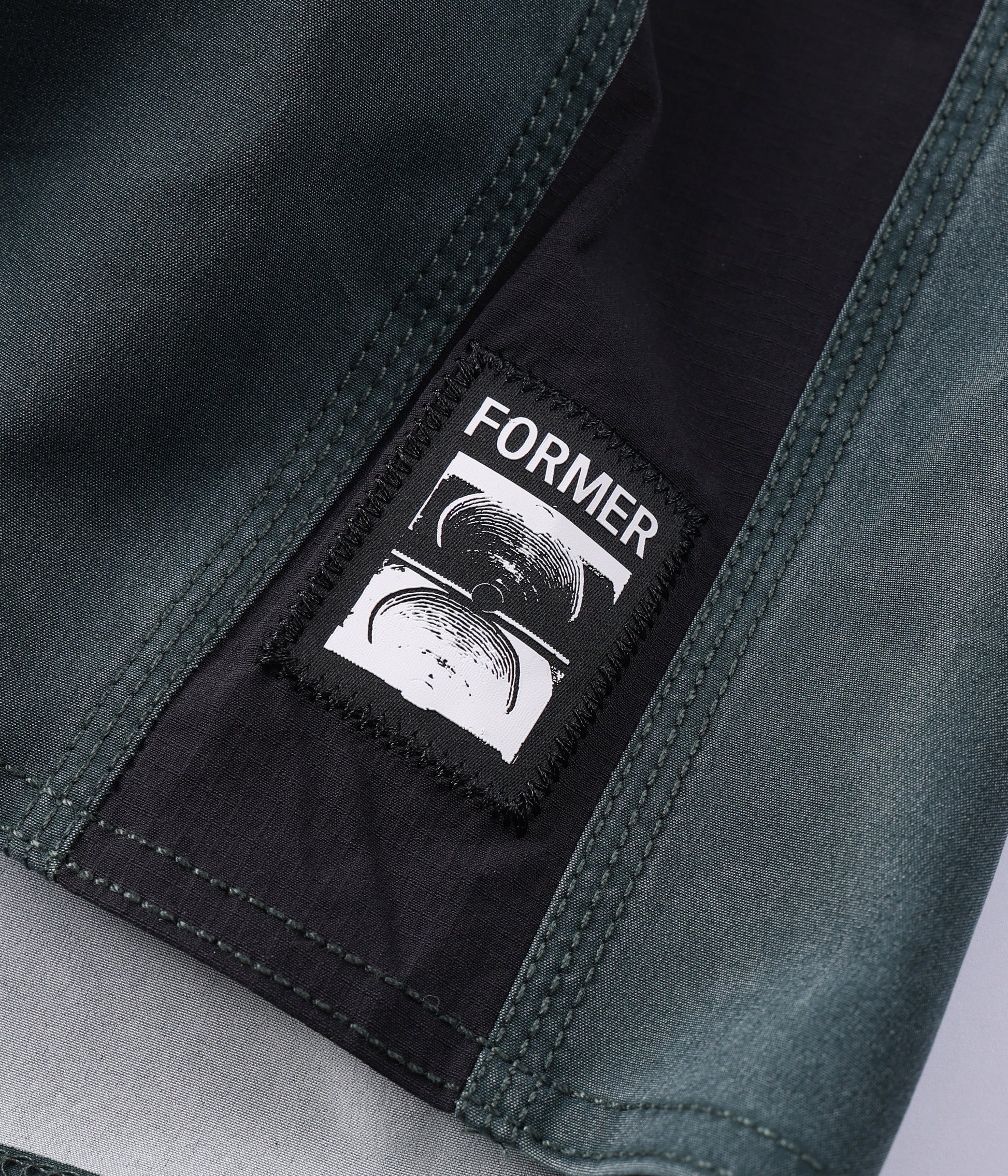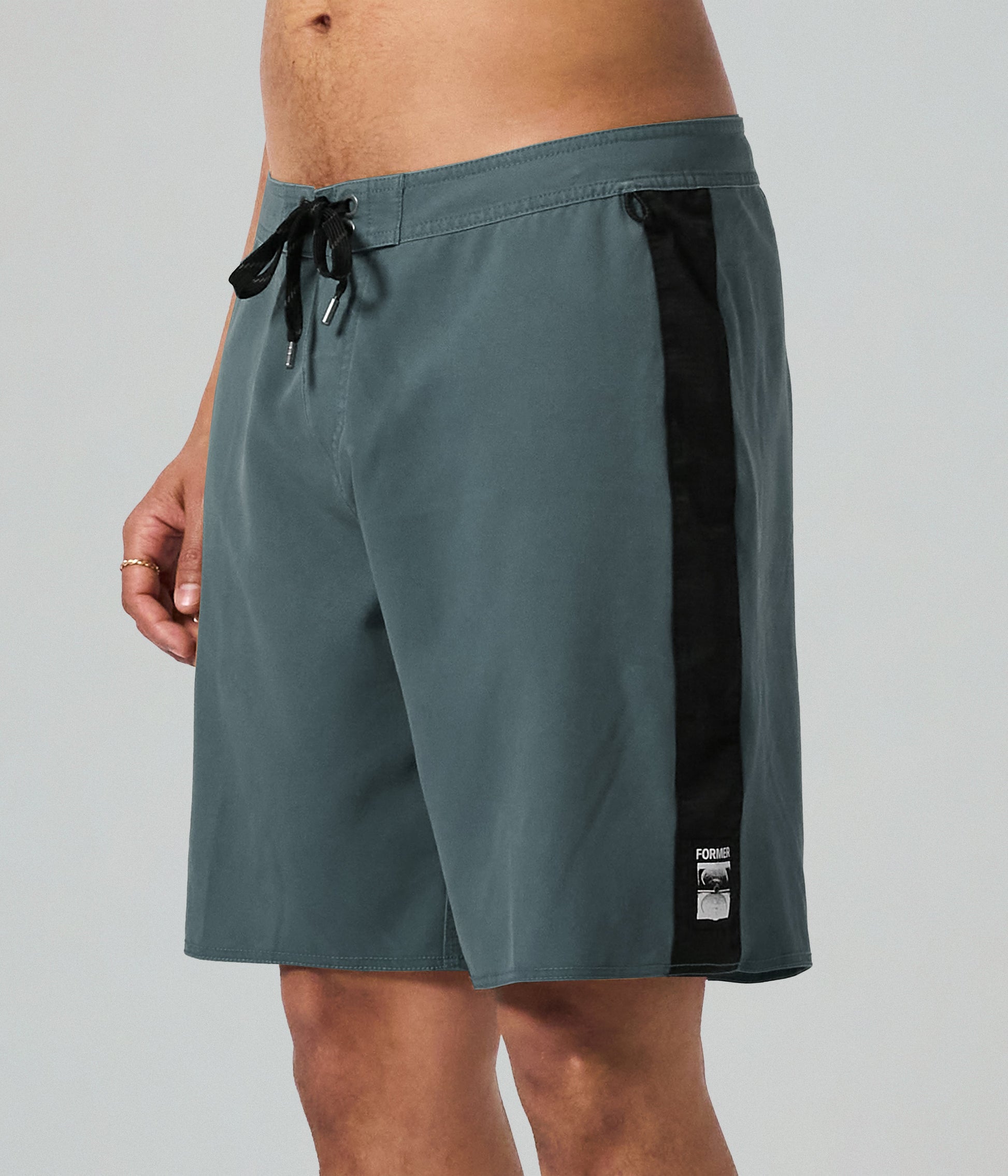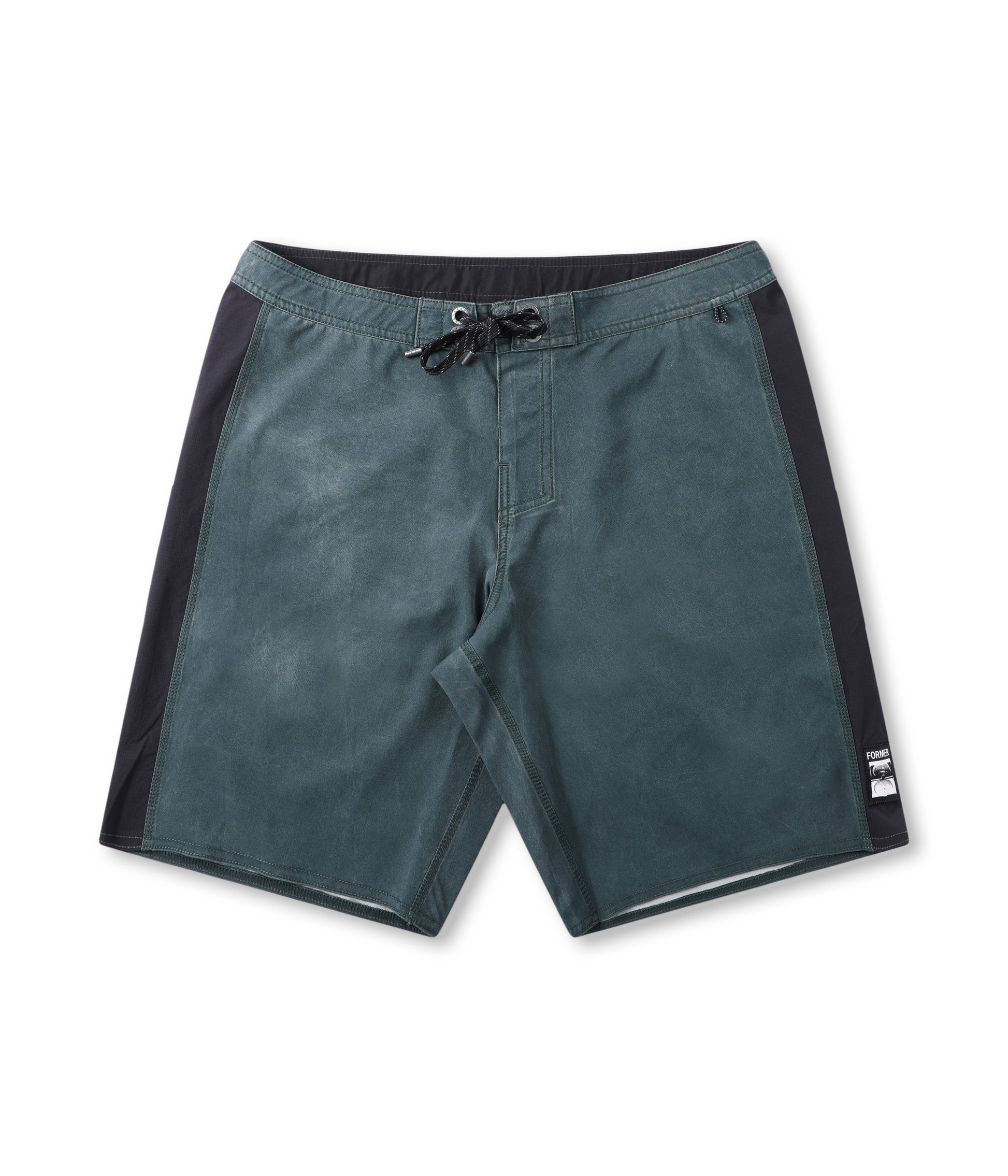 Constructed from a premium polyester-spandex blend (90% polyester 10% spandex) 4-way stretch fabric with a pigment print and vintage wash finish. Delivered in our standard FORMER 19" trunk fit. Featuring signature velcro back patch pocket with FORMER webbing and eyelet, drawcord closure with Franchise F metal aglets, elastic key loop, and fixed waist.